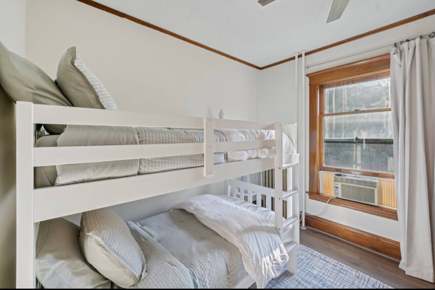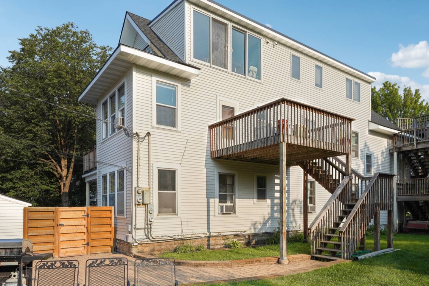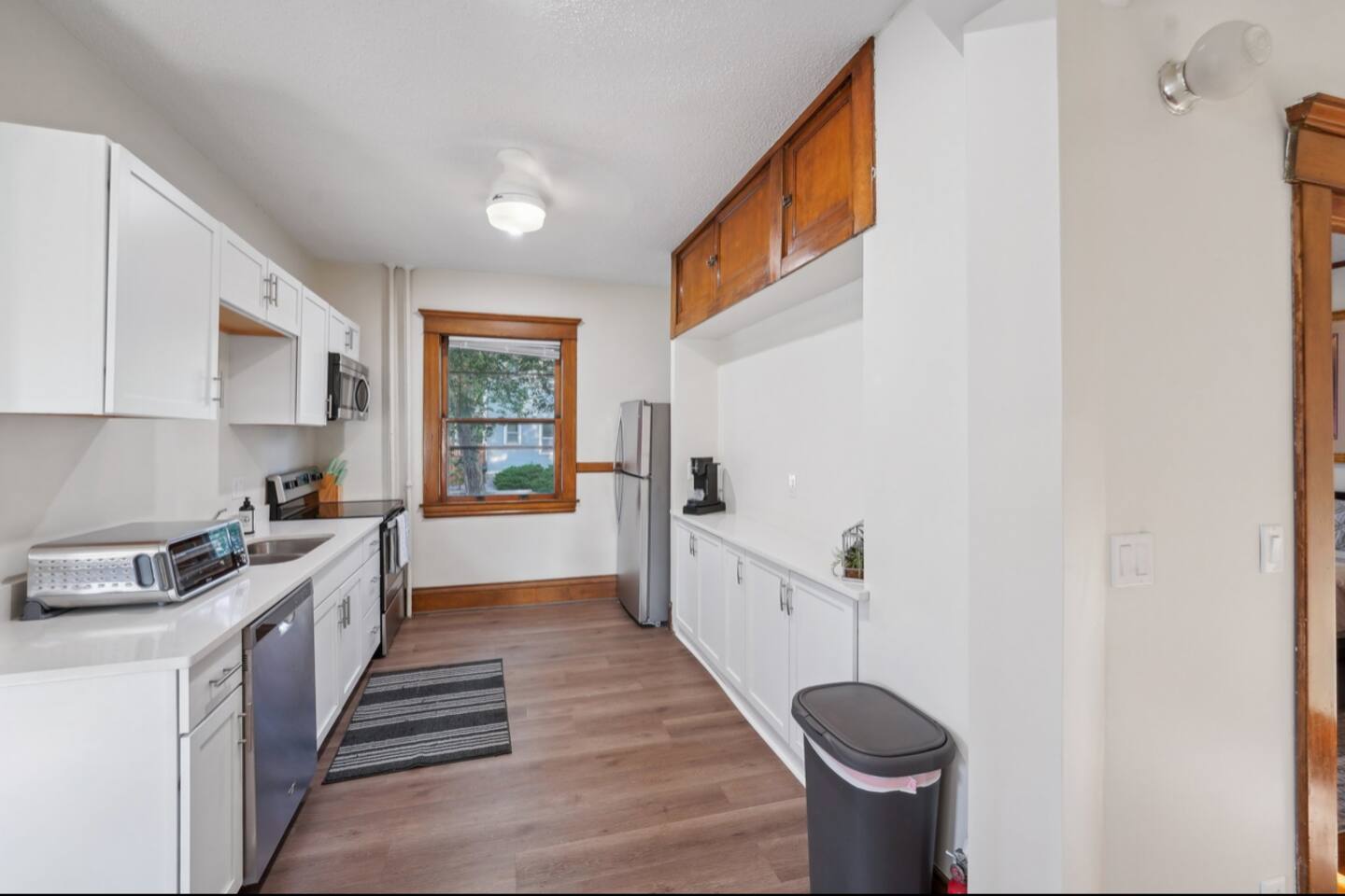 With its own separate entrance, step into charming comfort immediately with open living room + dining room. The apartment provides great privacy for each guest: BEDROOMS • Main floor: Bedroom 1: King Bed | Bedroom 2: Twin Bunk Beds + 1 full bathroom • Lower level Bedroom 3: Queen Bed KITCHEN: Stainless steel appliances, cooking basics, dishware/flatware, dishwasher, stove/oven, refrigerator, toaster oven, keurig pods, and dishwasher pods BATHROOM: 6 towels + colored washcloths for make-up removal. Shampoo + Conditioner, hair dryer, iron with clothes steamer (all-in one) GENERAL: Each bedroom & living room has its own smart TV with roku guest privacy where only you have access to your accounts + a suitcase holder with a laundry basket below. Free WiFi, shared coin operated washer/dryer (in basement), great antique radiators original from 1905 and window air conditioning for our beautiful summers, clothes hangers, trash bags/paper towels included. If you're ready for fresh air, or to enjoy the great MN season, enjoy the lovely fenced in yard and patio, too! Shared coin operated laundry space is provided in the basement with easy access from the lower level bedroom. Under the kitchen sink you will find complimentary laundry detergent pods and fabric softener sheets. FAQ: • Stairs required to access: 3 stairs from the sidewalk, and 3 stairs into the house, 1 bedroom is in the lower level. • 1 exterior security camera (outward facing), pet fee (paid pre-trip, 1 pet max). • This apartment will fit 4 adults and 2 children very comfortably. The twin bunk beds in the smallest room have a max weight of 150lbs per bed. PARKING: free street parking, it’s a corner property providing plenty of space. Guest access Guests will have access to the entire property via keyless entry Other things to note - No smoking - Pet friendly w/ $75 fee (+ fees and taxes, 1 pet max) - No events, parties, or large gatherings - Must be at least 25 years old to book - Additional fees and taxes may apply - Photo ID may be required upon check-in - NOTE: The property requires stairs to access - NOTE: Your safety matters. The property has cameras in the exterior of the building, none inside. The camera is outward facing and does not look into interior spaces. The camera records video and sound when activated by motion CHECK-IN TIMES: Please arrange your arrival time in advance with the host. Typically scheduled for 4pm. CHECK-OUT TIMES: Check-out time is at 11:00 am.