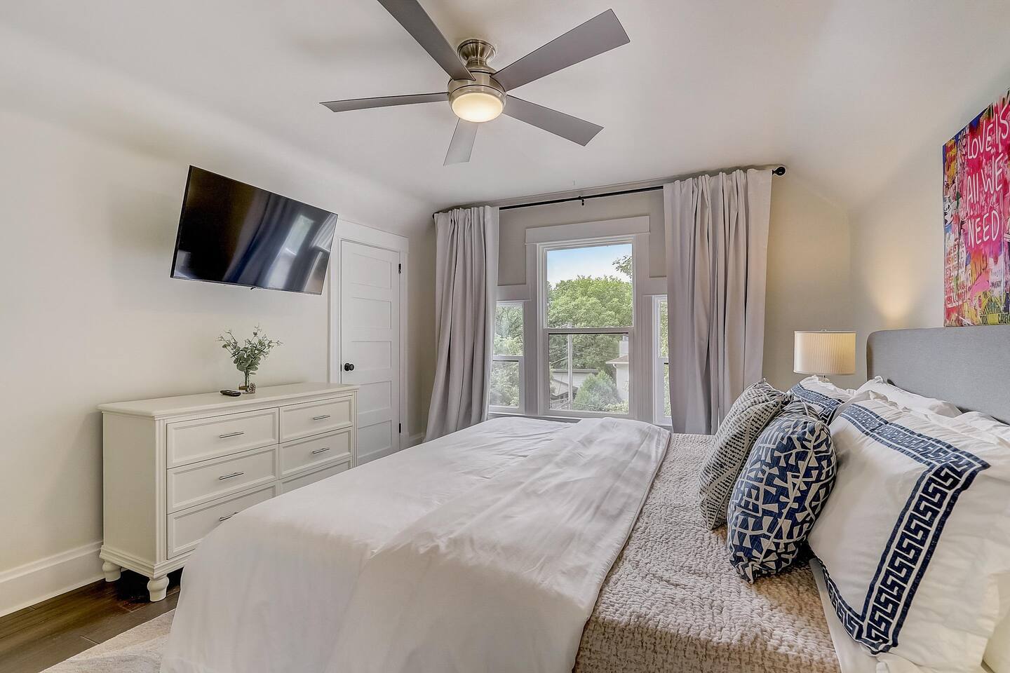 1905 remodeled home located in the heart of Linden Hills, 1 blk. from Lake Harriet and 3 blks from Lake Bde Maka Ska. This home is near some of the best restaurants in Minneapolis (Martina, Tilia, HB.) boutiques, and a farmers market on Sundays. This unique 3rd floor, 2 bedroom 1 bathroom unit features a large south facing master bedroom with natural light in every room and black out curtains for sleep. Comfort to the max with purple mattresses and 100% cotton sheets and towels.